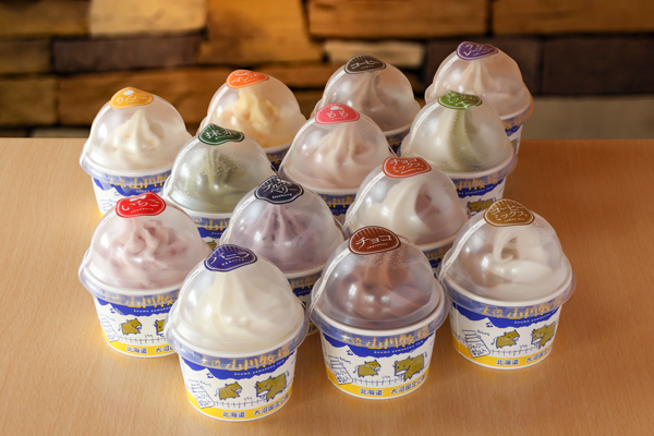 山川牧場のバニラソフトに果肉の入ったフィルングが混ざり合って出来上がるソフトクリームです。フィルングは6種類(いちご・もも・リンゴ・ラムレーズン・マンゴー・ブルーベリー)。フルーツ含量50〜70%。「もっと美味しいスウィーツを!」を目指して誕生しました。