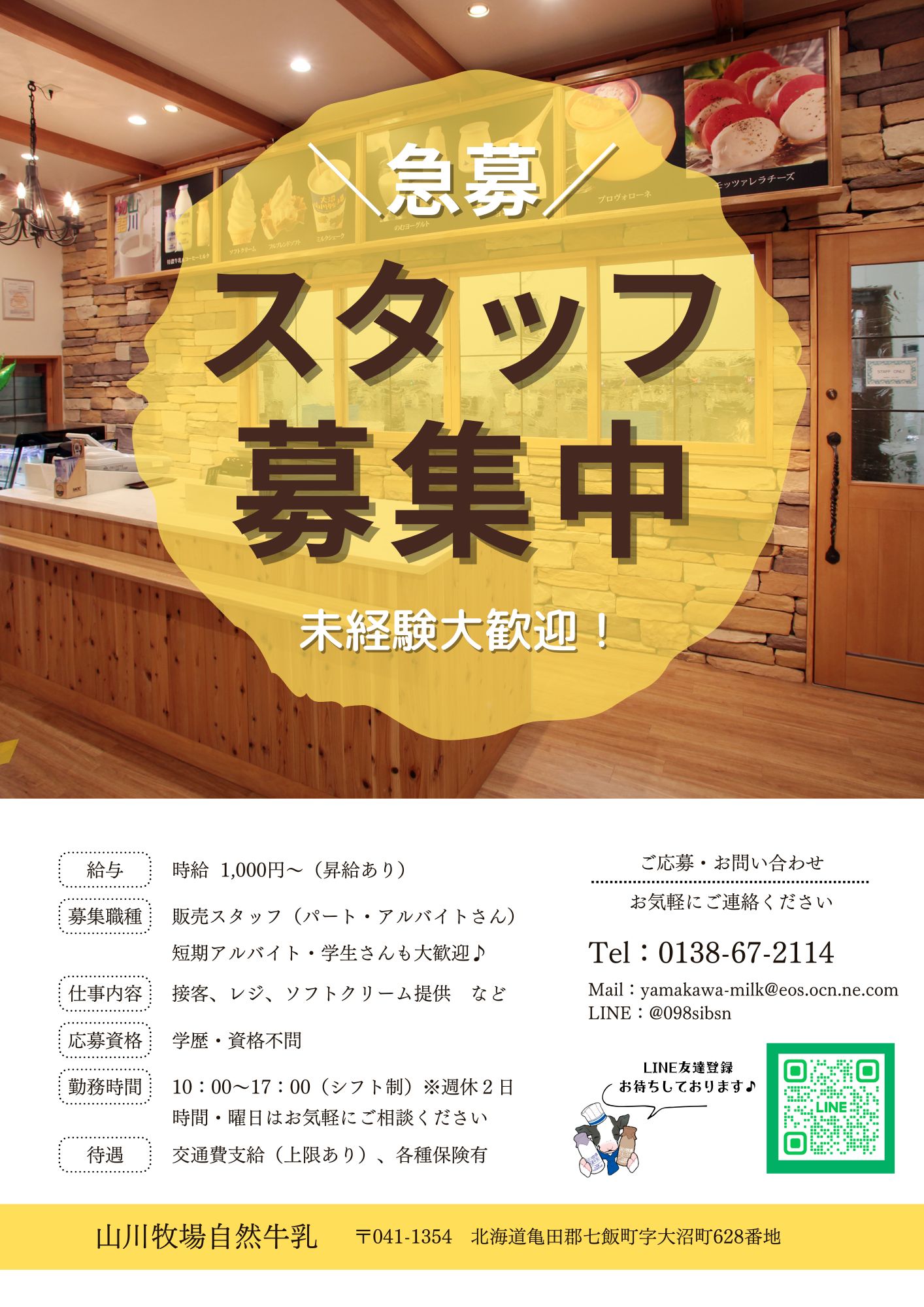 現在、山川牧場ミルクプラントにて販売スタッフを募集中です。
