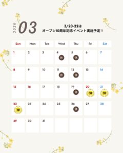 2026年3月の営業日の変更のお知らせになります。