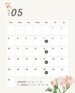 続けて5月の営業日についても変わらず、通常通りの営業となっております。
